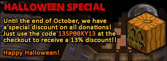Until the end of October, we have a special discount on all donations! Just use the code 13SP00KY13 at the checkout to recieve a 13% discount!! Happy Halloween!Read Full Post